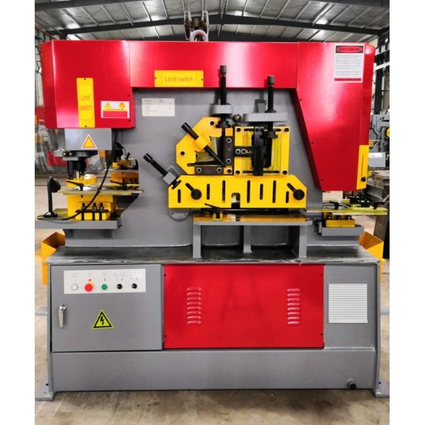 Using hydraulic transmission,is China's currently latest Multi-functional United punching machine products,can fabricate plate Flat steel,square steel,round steel,angle steel,chanel steel,I-beam to cut,punch,shear modulus and shear block device is equipped with.